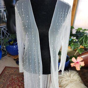Davi & Dani Boho Sheer Pearl & rhinestone Longline Kimono Duster Cover Up 2X