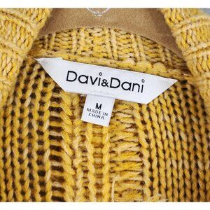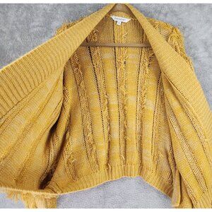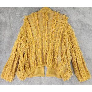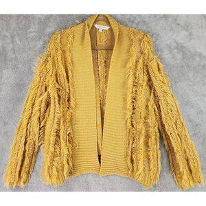 Davi & Dani Cardigan Womens Medium Yellow Fringed Long Sleeve Open Front Sweater