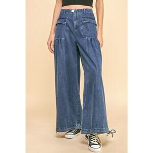 Davi & Dani Drawstring Hem Wide Leg Mid Rise Denim Jeans Size Medium