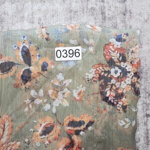 Main colors: muted green with orange, beige, blue, and cream floral allover print