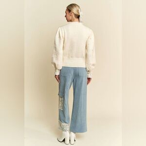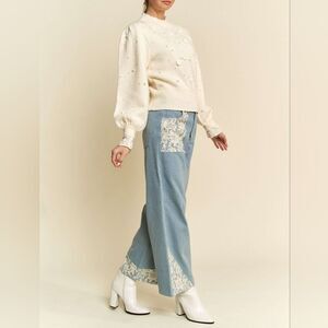 *Davi & Dani Lace Applique Wide Leg Jeans in sz M L