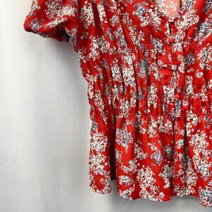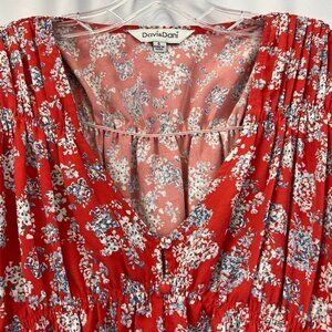 Davi & Dani Multicolor Floral V Neck Short Sleeve Blouse Top Size Small