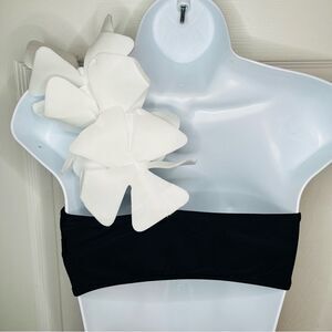 Davi & Dani One Shoulder Flower Two Piece Swim Set Black & White Bikini S NWT