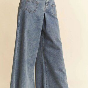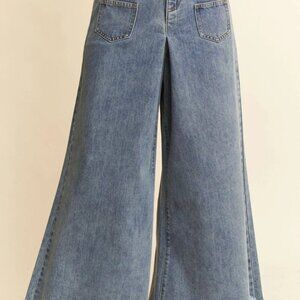 Davi & Dani Patch Pocket Wide Leg Culotte Jeans