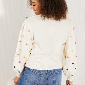 Davi & Dani Pop of Color Full Size Rainbow Pom Pom Sweater Small EUC