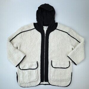 Davi & Dani Sherpa Fleece Zip Hoodie Jacket White Black Trim Size M Oversized