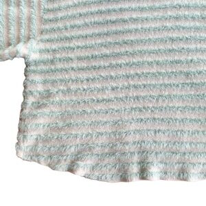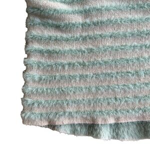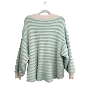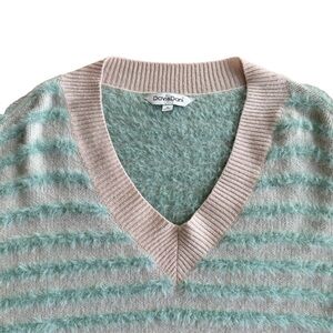 Davi & Dani Striped V-neck Sweater Cream Mint Fuzzy size Medium Soft Pullover