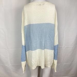 Davi & Dani Sweater Womens Sz M Ivory Blue Colorblock Long Sleeve Boat Neck