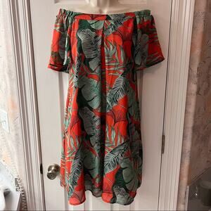 Davi & Dani Tropical Print Off Shoulder Lined Dress With Side Pockets Size S