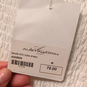 Davi & Dani White Smocked Tassel Tube Top- White-Medium NWT