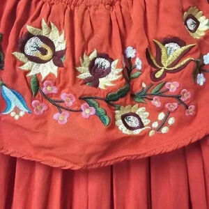 Davi & Dani Women's Floral Embroidered Off Shoulder Peasant Red Romper Sz Large