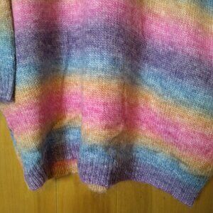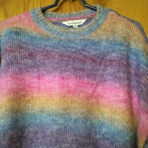 Davi & Dani women's Small oversized striped sweater has side pockets and is made of 58% acrylic, 29% polyester, 9% nylon and 4% wool.