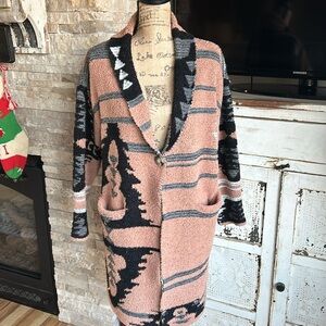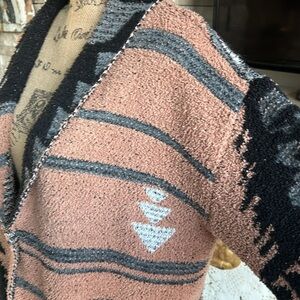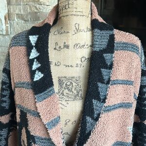 Davi & Dani camel, black and gray long sleeve open front western aztec jacket cardigan. Two pockets. Soft.