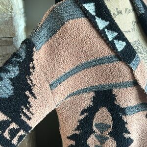 Davi & Dani camel, black and gray long sleeve open front western aztec jacket cardigan. Two pockets. Soft.