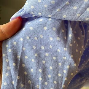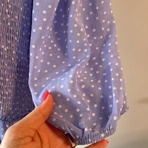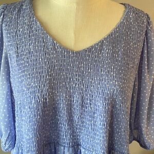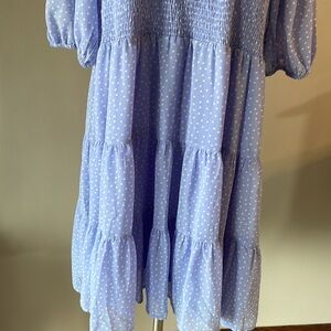 Davi & Dani plus women’s smocked tired polka dot dress light blue white lined 2X