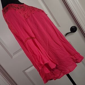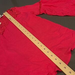 Davi & Dani sz S berry pink top with lace neckline and bishop sleeves