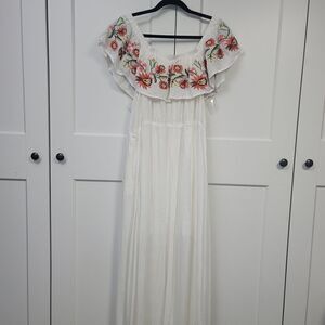 Davi and Dani embroidered flowers off the shoulder maxi dress