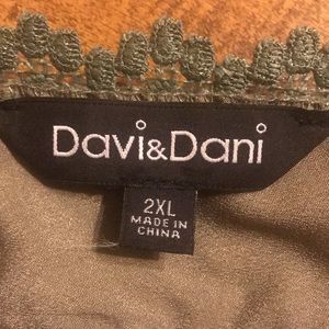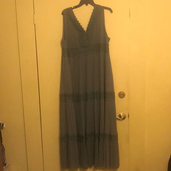 NWOT Dani & Davi 2XL; 100% Rayon lining—100% Polyester; hand wash cold; no bleach; hand wash; medium green colored maxi dress (Tag says 2X but actually it fits more like a 1X)