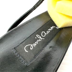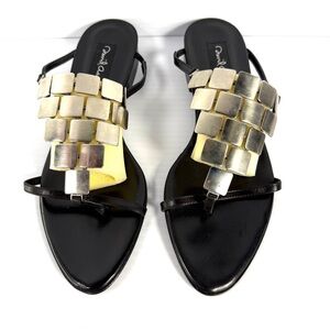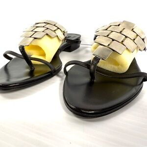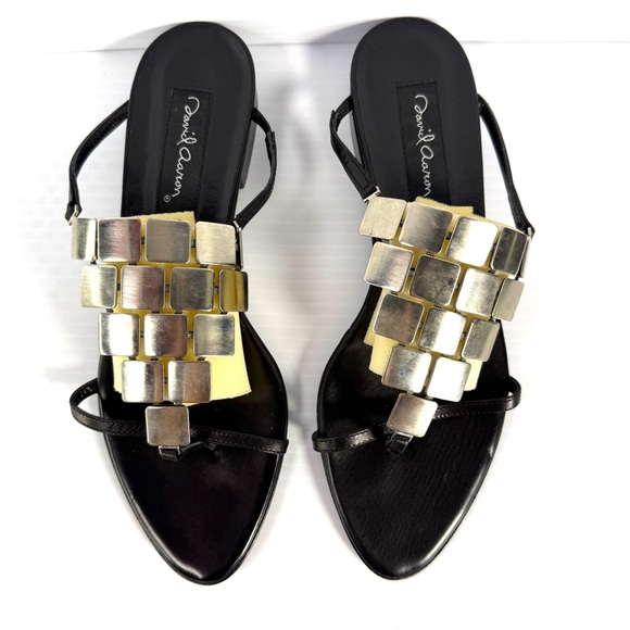 David Aaron, black leather sandals with square metal embellishments