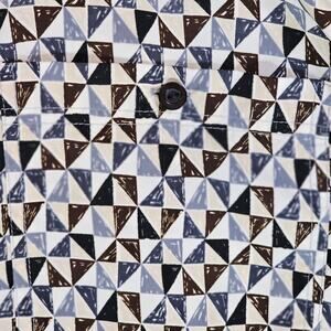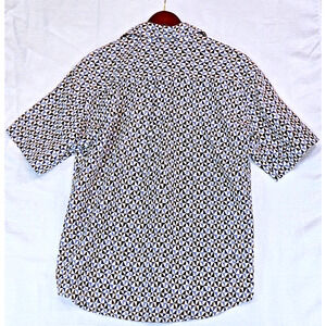 The David Adams Collection Men's Short Sleeve Button Up Shirt in size Large features a geometric pattern in a multicolor design. Made from a blend of polyester and modal, this lightweight and easy-care shirt is perfect for various occasions such as travel, casual outings, workwear, and business meetings. With a collared neckline, button closure, and a regular fit, this shirt is a versatile and stylish addition to any man's wardrobe. The shirt also comes with a convenient pocket and is machine washable for added convenience.