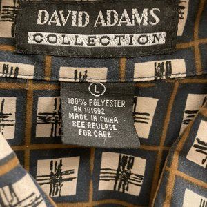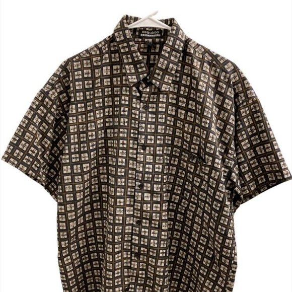 David Adams Mens Shirt Sz L Short Sleeves Button Down 100% Cotton Black Brown