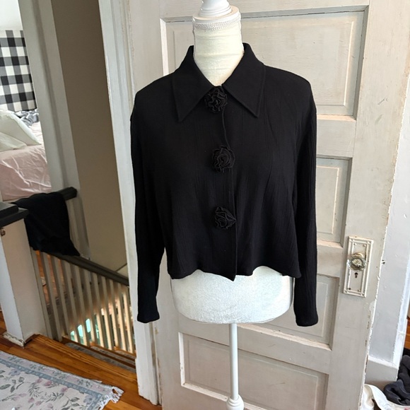 David Albow NY vintage 1990’s cropped top. Snap upfront long sleeves with fabric flowers over the buttons, even though it’s vintage it has a cropped swingy fit. Size Large. Excellent condition.