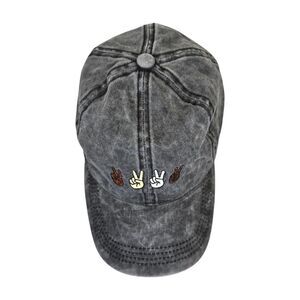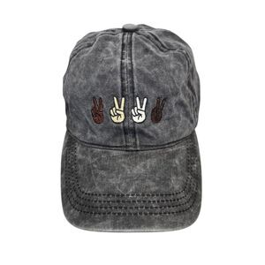 David And Young Women's Gray Embroidered Peace Sign Multicultural Hands Cap Hat. Embroidered multicultural hands making peace sign on gray cap. Adjustable back strap that can be tucked into side pocket to conceal. 100% Cotton.