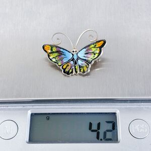 Title: David Andersen Guilloche Multicolor Enamel Sterling Silver 925 Butterfly Pin Brooch