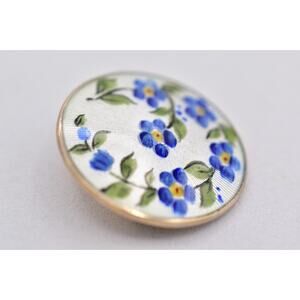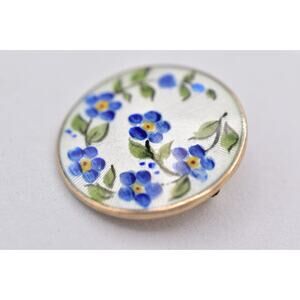 David Anderson Norway Pin Brooch Flower Enamel Round Signed Victorian 925 BinBP