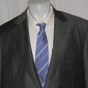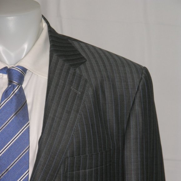 David August Bespoke Gray Yacht Striped Two Button Suit Jacket 44L
