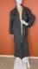 Stylish gray long coat featuring black leather accents. Perfect for a chic look trench coat with very small holes see photos thank you.