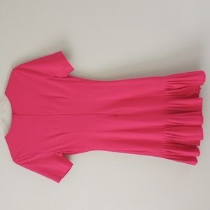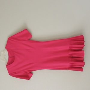 David Benjamin Collection Pink Ladies Dress, Bottom Flapper Pleats at hem, Back Zipper, Round Neck Short Sleeve, 50% Polyester, 50% Cotton, Body Fit. Size 10. Pre-owned. Like New. No signs of Wear and Tear.