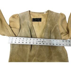 RARE David Benjamin Suede Leather Vest Jacket Large Knit Sleeves Victorian Biker