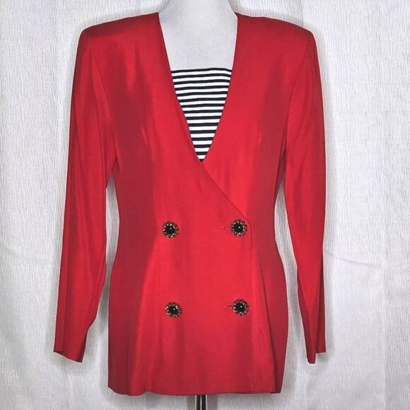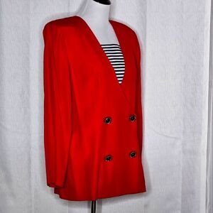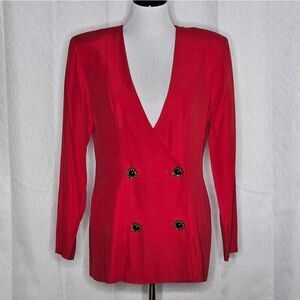 David Benjamin Vintage 80's Bold Red Double Breasted Tailored Fit Blazer Blouse