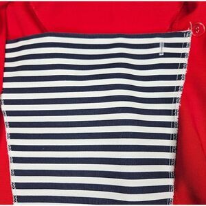 Striped Neckline Insert can be unbuttoned on one side and folded down for a Deep V-Neckline