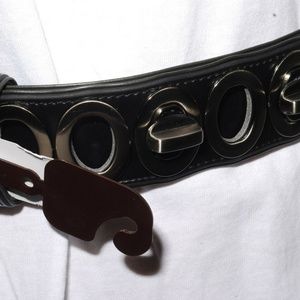 New David Bitton Buffalo Genuine Black Turnbuckle Leather Ladies Belt Sz 36"