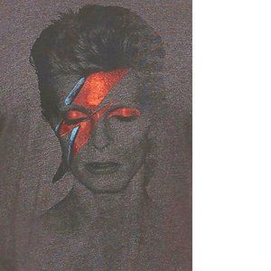 Gray Big and Tall T-Shirt from David Bowie with famous Aladdin Sane design on the front. 60% Cotton, 40% Polyester.