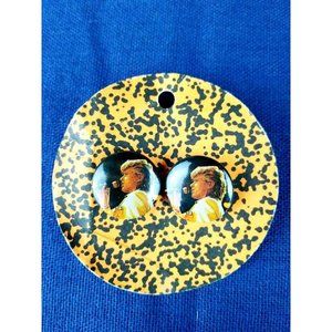 1 pair of vintage David Bowie photo earrings. From the 1980s, they feature a picture of Mr. Bowie singing in the "Modern Love" video. These are post earrings for pierced ears but could also be used as hat buttons, lapel pins or just as a nice addition to your collection. Comes on original display card.