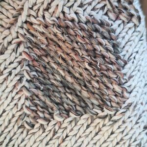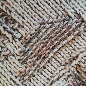 Almond color with the floral portions being of MUTED colored yarns of peach, bronze, gold and hunter green (color close-ups pictured)