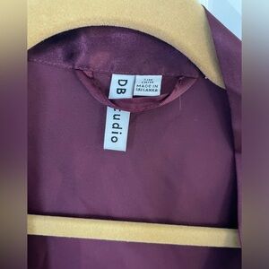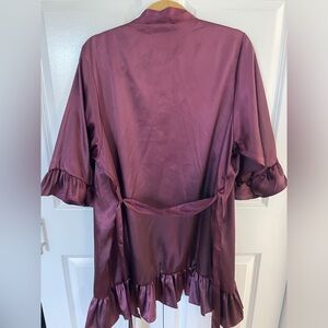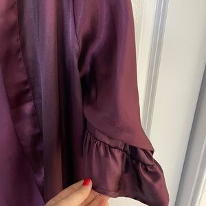 Only worn once! Silky and has ruffles on sleeves. Maroon color