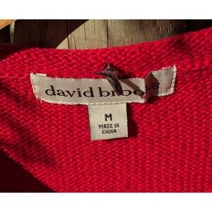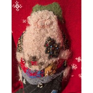 Turn heads and sleigh parties in this vintage David Brooks ugly Christmas sweater! Features a cheerful Santa, festive dangling charms, and bright Rudolph red to light up the room.