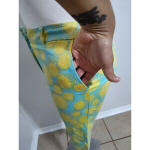 David Brooks High-Waisted Blue Yellow Lemon Print Pants 8