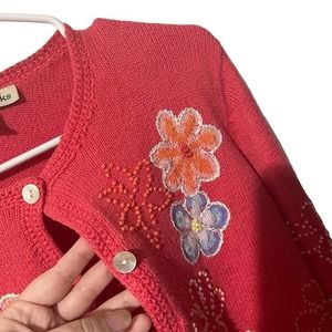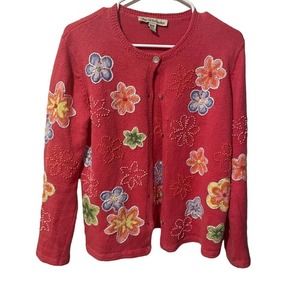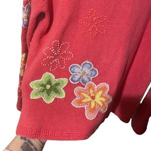 David Brooks Salmon Floral Colorful Embroidered Sweater Cardigan