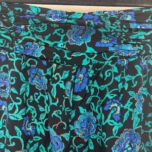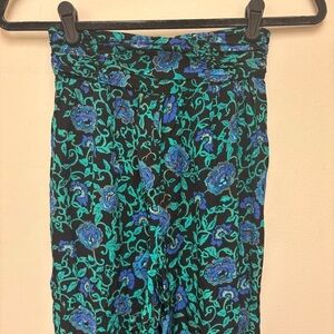 Amazing Vintage David Brooks Floral 100% Rayon Pants. High rise. Folded over ruched waist. Hidden zipper back. Made in USA. Vintage sizing. Please see measurements. Measures more like a 2.