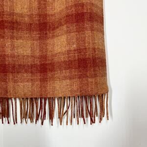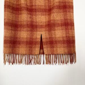 David Brooks Wool Blend Plaid Skirt in Burnt Orange Color; Fringed Hem; Fully Lined; Back Slit; Back Zip Closure