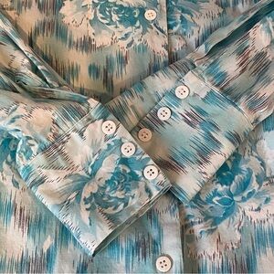 David Brooks women's size 12 long sleeve blue white floral button-up shirt