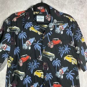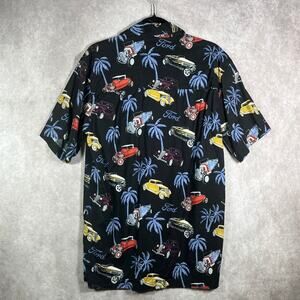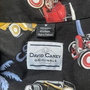 David Carey Shirt Mens Medium Black Car Palm Tree Button Up Novelty Vacation