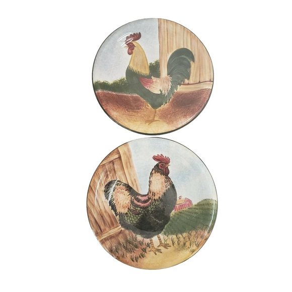 David Carter Brown Set of 2 On The Farm 8 Inch Rooster/Hen Plates-Sakura. Good preown condition. No chips or cracks. Microwave safe. Dishwasher safe. Listing consist of two plates. Please review all pictures for more details.
