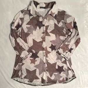 David Cline Sand & Stars Button Up Collar 3/4 Sleeve Top Shirt Blouse M brown
