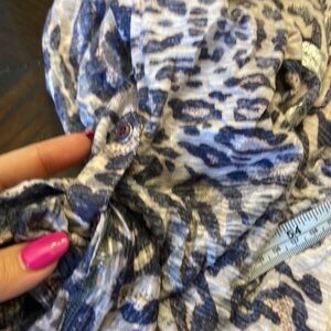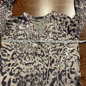 David Cline animal print V neck blouse / top pink purple metallic oversized Med